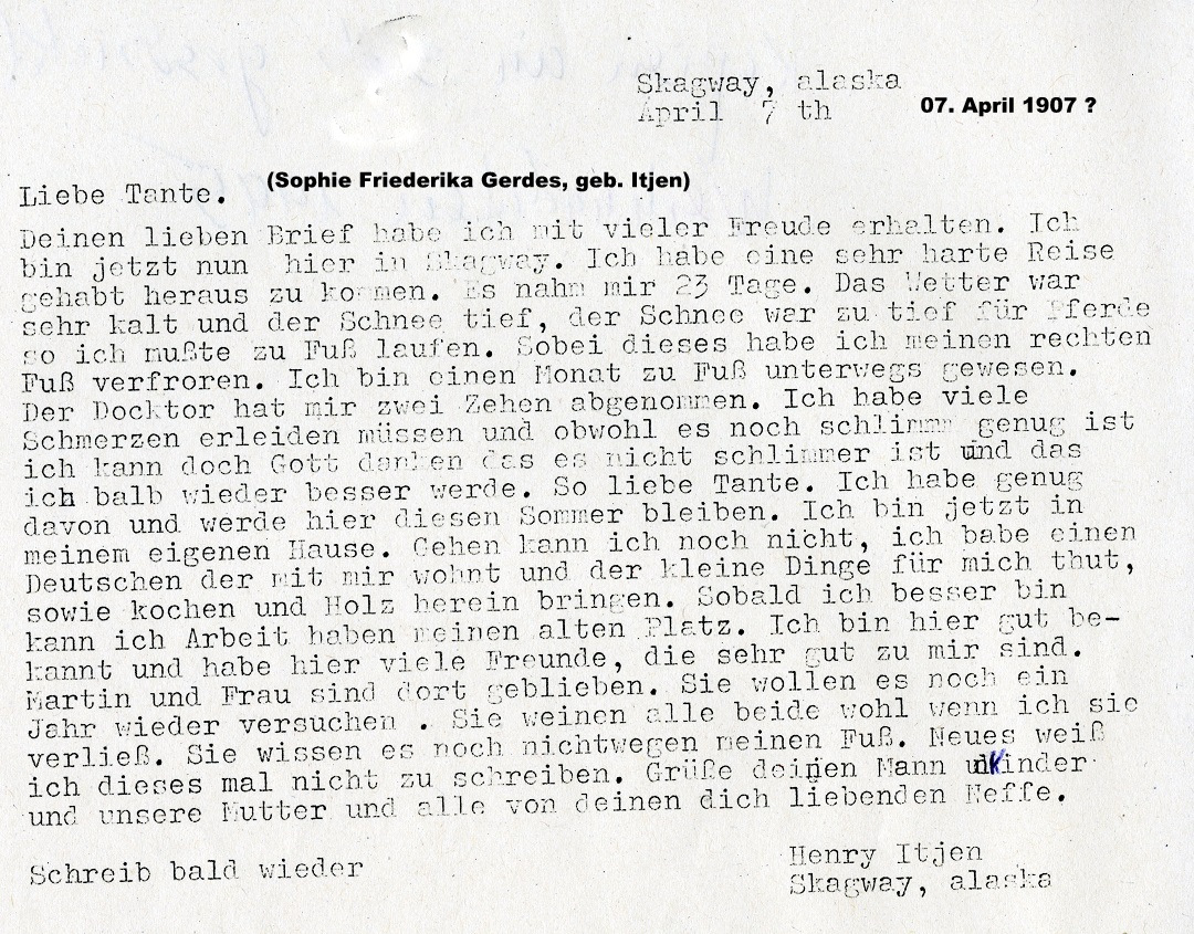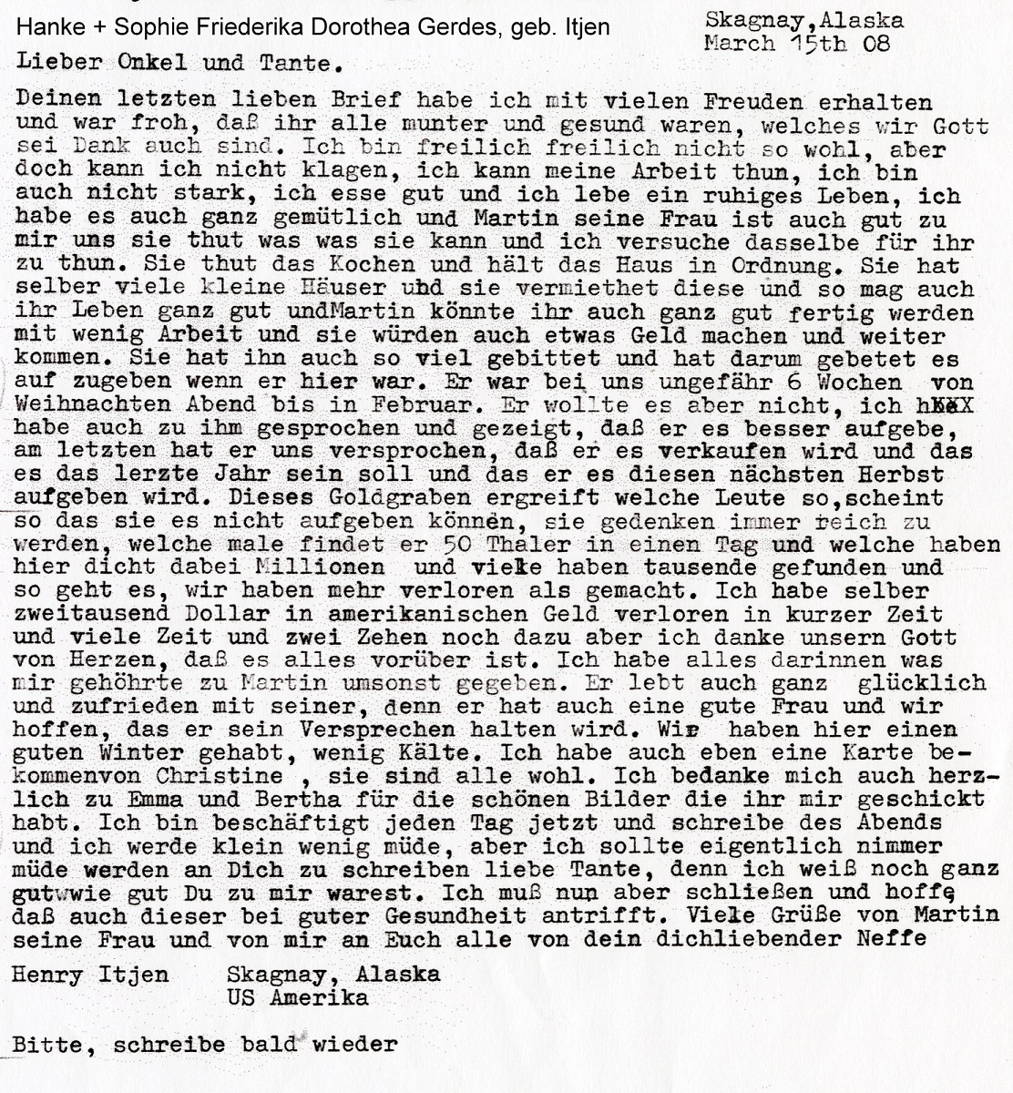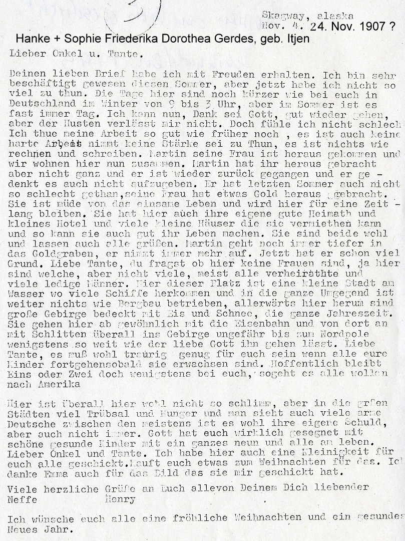1907-1908 Briefe von Henry Itjen an Hanke + Sophie Gerdes, geb. Itjen